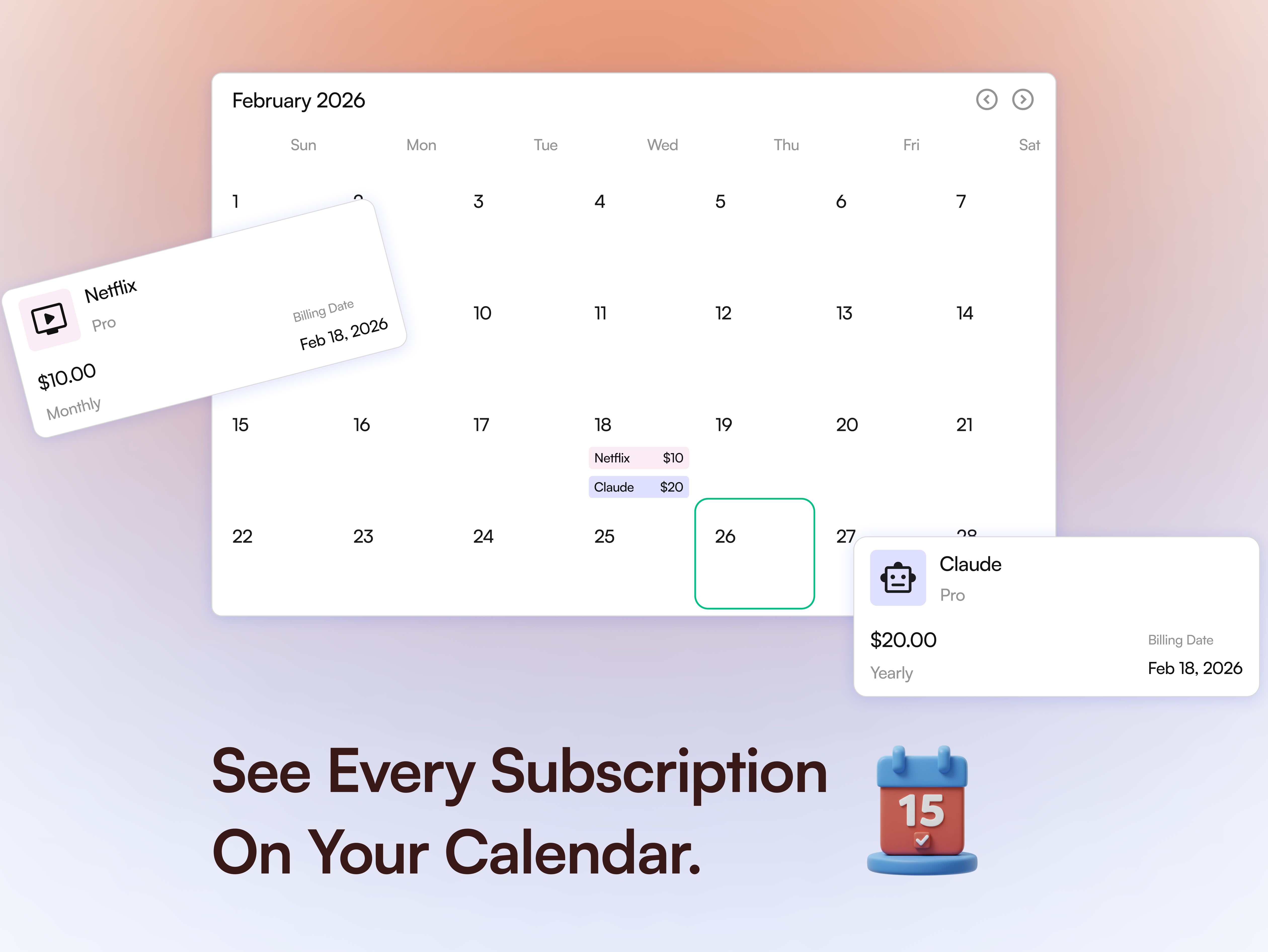 Everything you need to stay on top of every recurring charge.